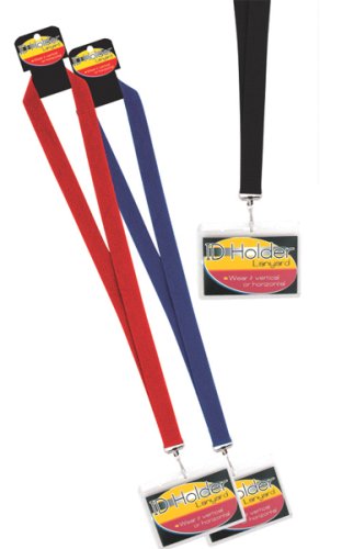 Canvas lanyard 3/4" wide and 36" long. Each lanyard has a hook on the end with a keyring attached with 4" X 3" clear plastic badge holder that will hang vertically or horizontally. Available in Pink, Burgundy, Royal Blue, Red, Black & Navy Blue. You will get a random mix of colors.